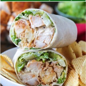 Our Chicken Caesar Wrap has all the flavors you love in a chicken Caesar salad wrapped up in a tortilla. We love making these wraps for lunch or a light dinner, or for game days and tailgating!