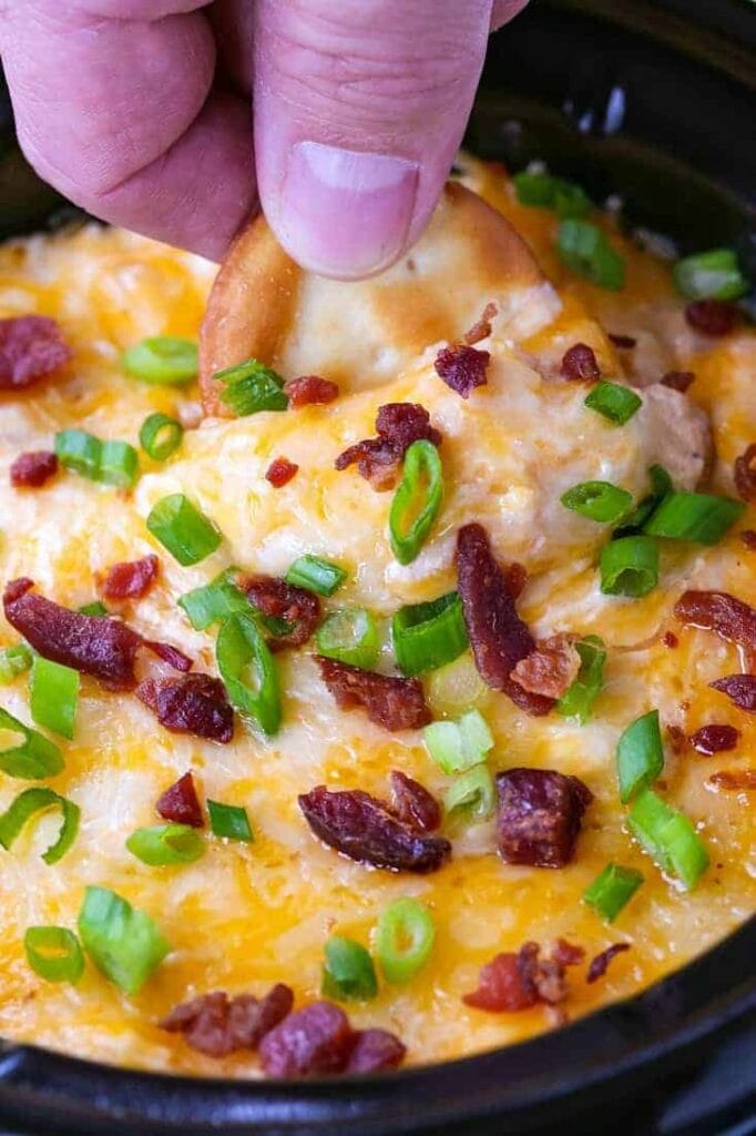 This Crock Pot Buffalo Chicken Dip is always a hit at parties! Serve this dip with tortilla chips, pretzel chips or cut vegetables for dipping!