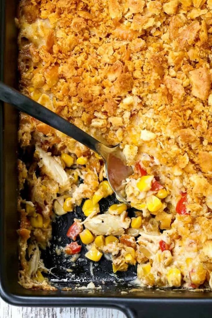 This creamy, cheesy hot crab dip recipe is perfect for serving at parties! Use fresh corn, canned corn or frozen – whatever you have on hand!