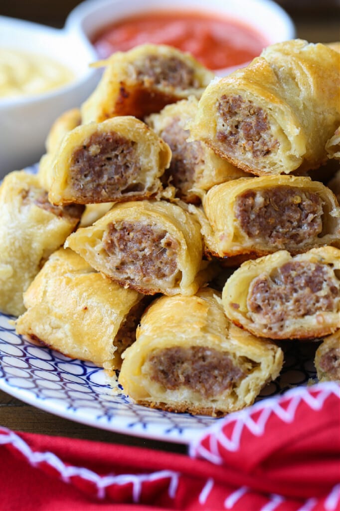 Everyone LOVES these buttery, flaky Puff Pastry Sausage Rolls! A perfect party appetizer, serve with a variety of sauces for dipping. These sausage rolls can be made ahead of time and frozen, too!