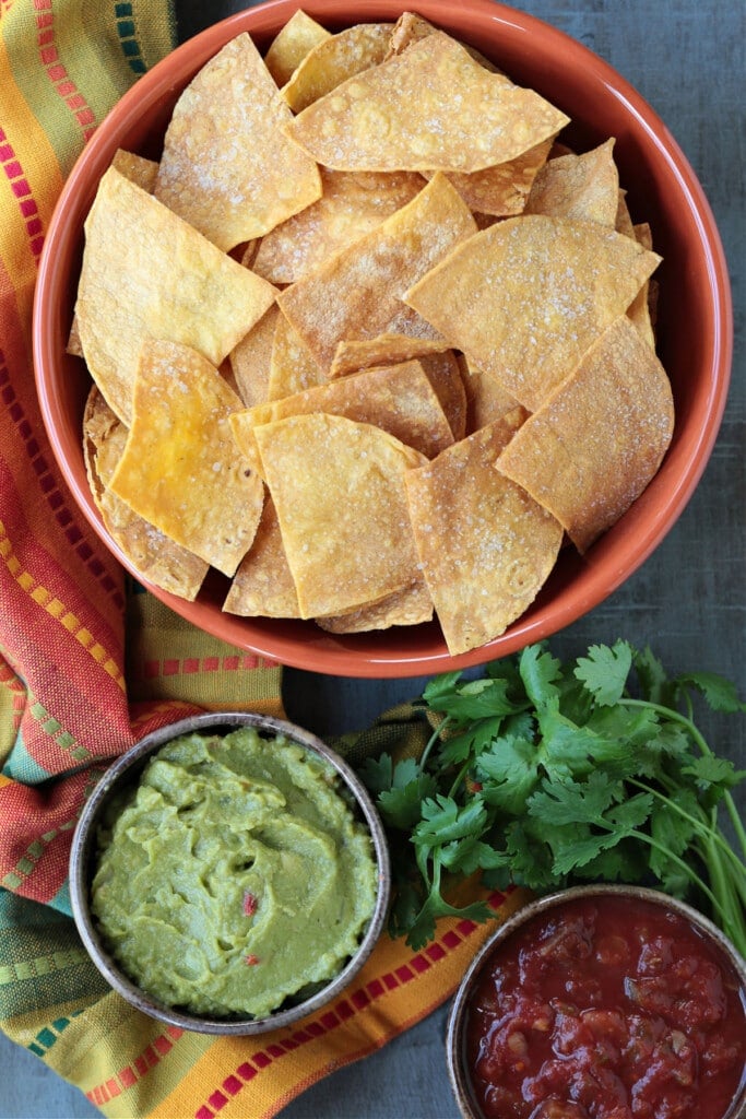 These Air Fryer Tortilla Chips are super crispy and so addicting! Dip them in salsa, serve them with soups or make a platter of nachos. A delicious snack that everyone will love!