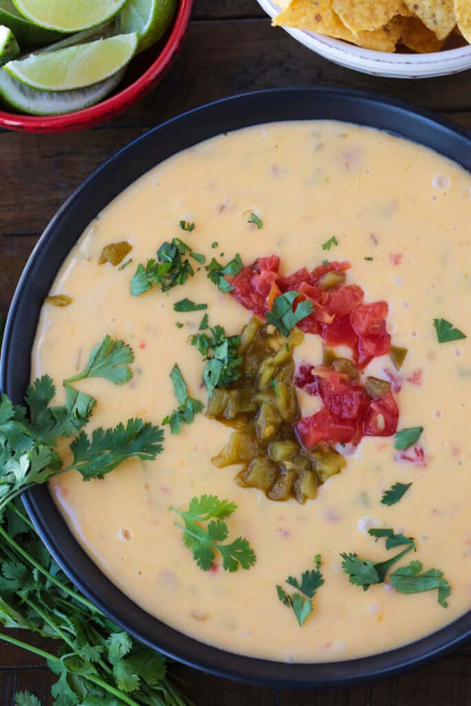 This Slow Cooker Queso is so addicting, you’re not going to be able to stop eating it. Because it’s so easy to make and keep warm in a crock pot, it’s one of our favorite party appetizers!