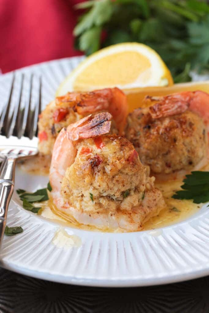 Delicious Crab Stuffed Shrimp is perfect for special occasions or a date night at home! Butterflied shrimp stuffed with crab meat and peppers, drizzled with lemon and butter.
