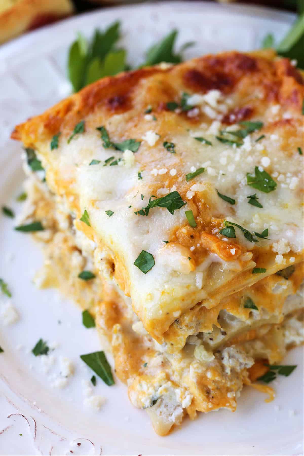 - Let the lasagna rest for 15 minutes before slicing. Garnish with more chopped parsley if desired and serve.